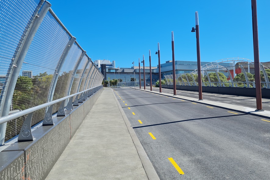 Working in conjunction with Ronstan, SRS Group used our tensile safety mesh to create anti-throw and fall protection screen panels to line the footpath of the Kirkbride Road underpass (over the SH20A).