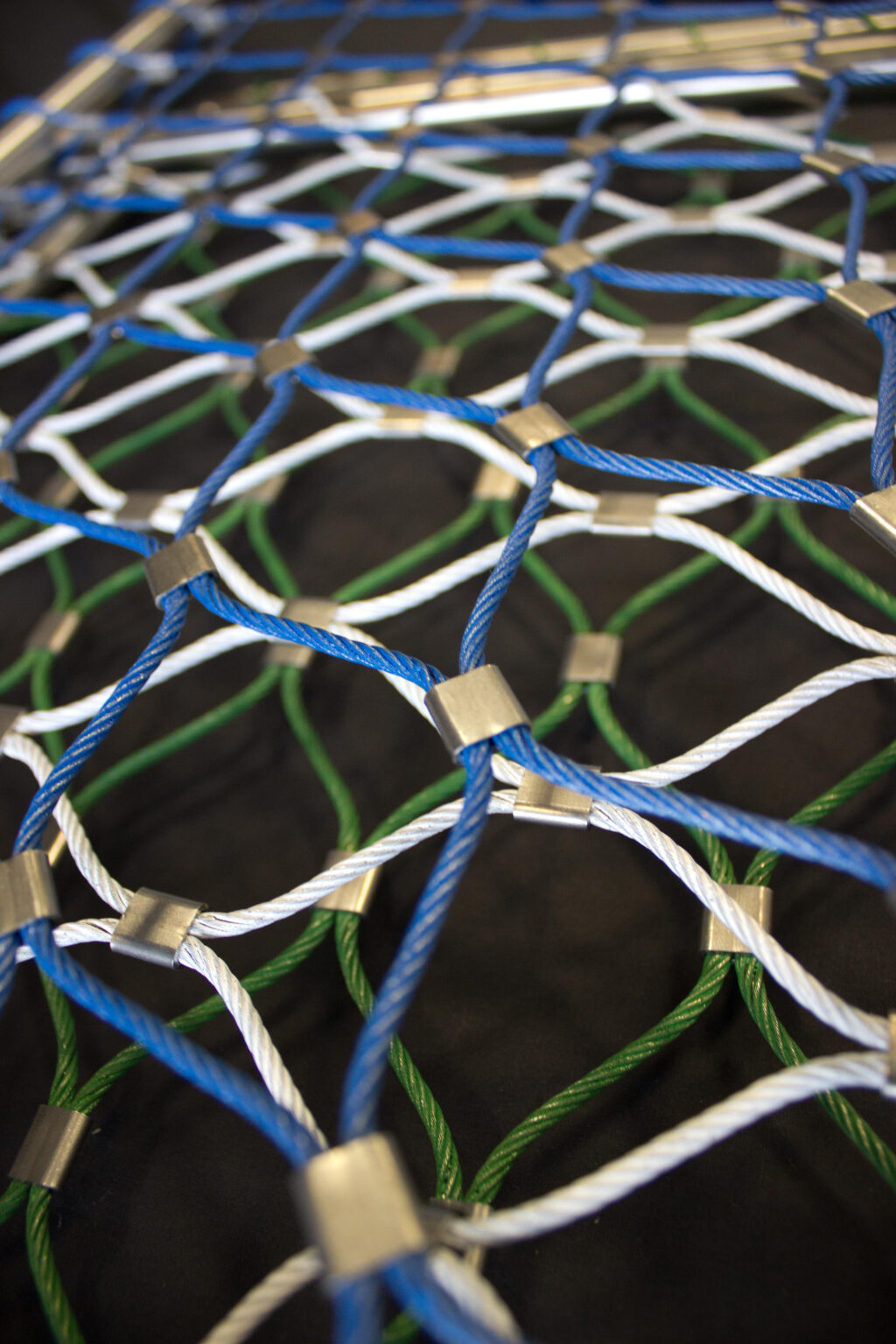 This adds a new element of interior and exterior design opportunities. Whether you take a minimalistic approach using the standard colours – black, white or silver – or you want a pop of colour using green, blue, red or gold, our tensile mesh solutions can be customised to suit your requirements. We can even deliver custom colours that can be matched to brand colours on commercial buildings for example.