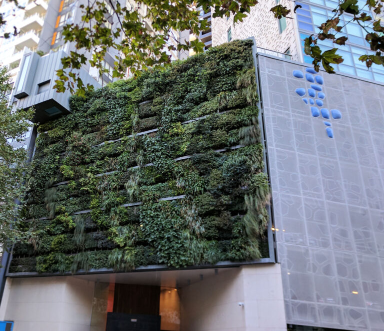 The Triptych Apartments in Melbourne’s South Bank. This vertical garden used about 30 species from grasses, ground covers, succulents and dwarf shrubs. This green…