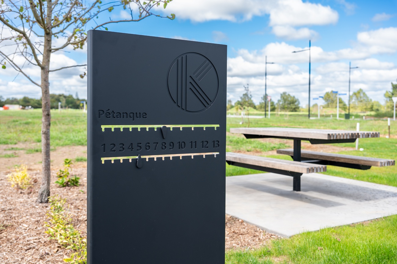 - Additional Enhancements – A custom pétanque scoreboard, bringing functionality and personality to the recreational spaces. Six seat end caps with and without engraved logos, adding a refined detail to the seating design.