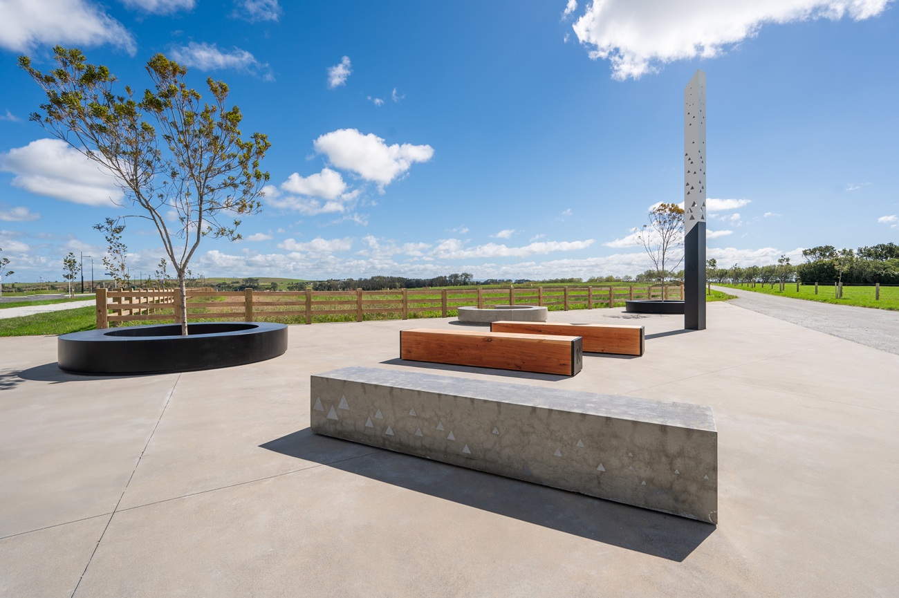 The new Karaka Village development required bespoke design elements to complement its contemporary, community-focused environment. SRS Group was subcontracted by Contrax Greenscapes to deliver a range of custom fabrication solutions that combine durability with striking aesthetics.