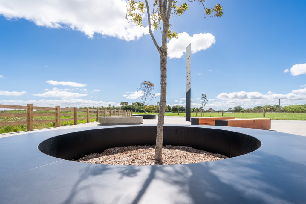 - Tree Surround Seating – Three 3.2-metre diameter seats, crafted from 6mm aluminium and powder coated for longevity and visual appeal.