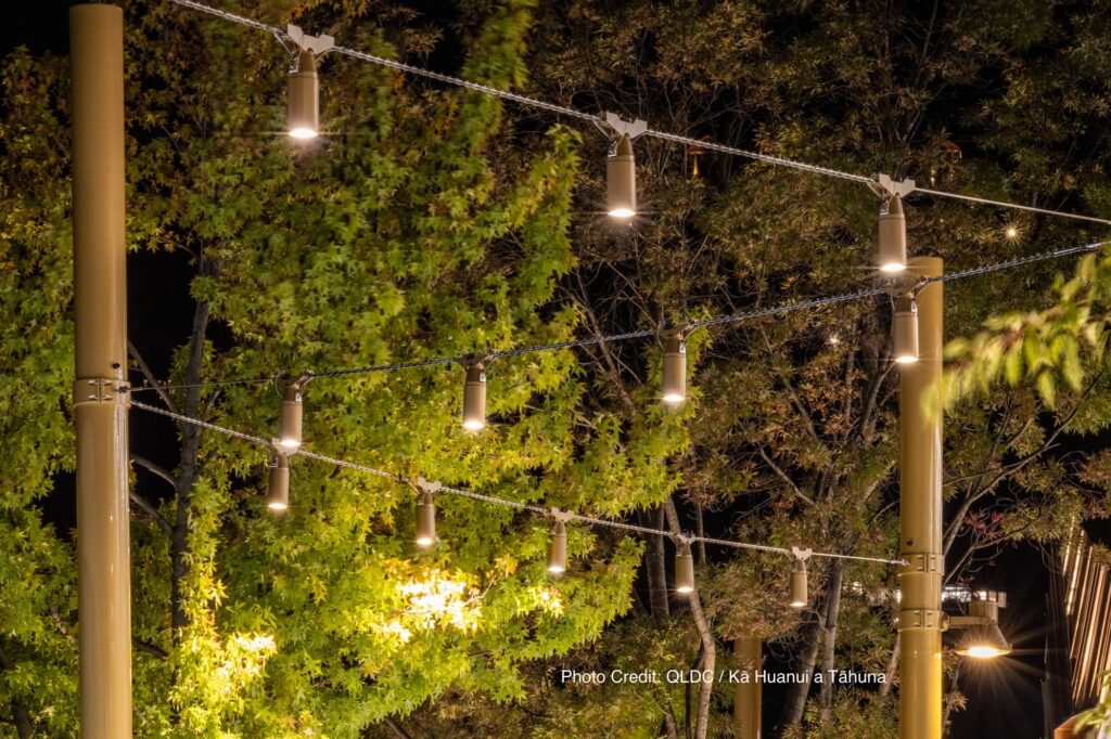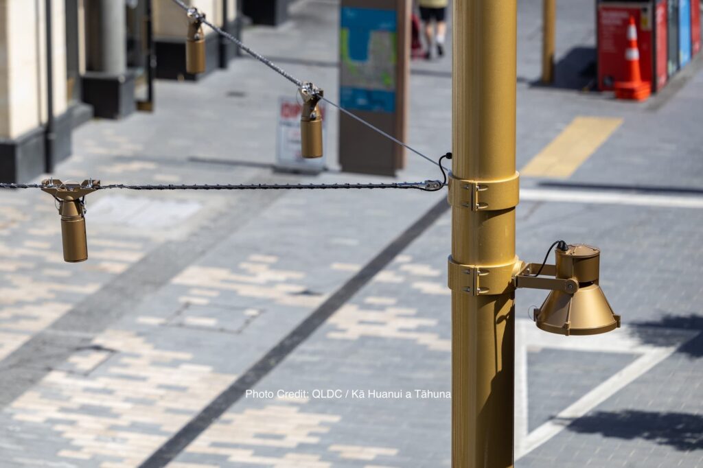 Gold light poles express the rich mining history of whero (gold) with ‘whero’ clearly visible on select poles. The pole designs also represent travel by waka with a beautiful contrasting Kowhaiwhai design.