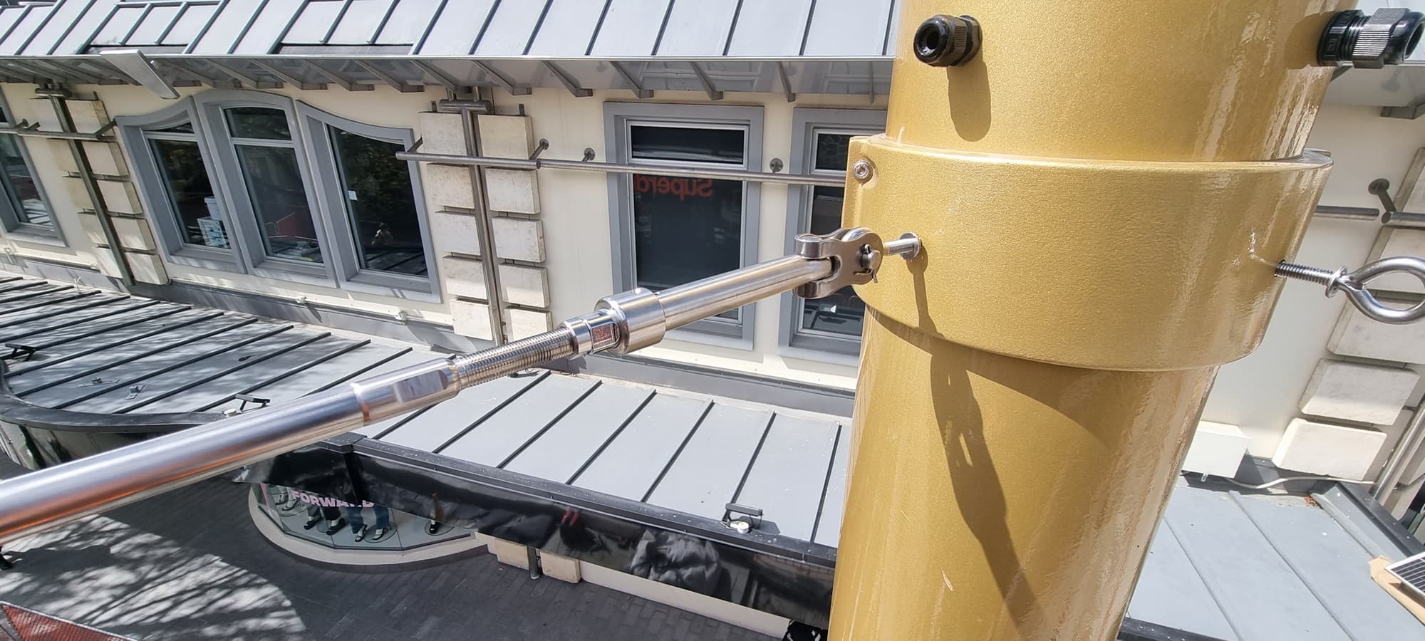 SRS was contracted to install catenary stainless steel 316 cables for the lights to hang from. Pole installation by others.