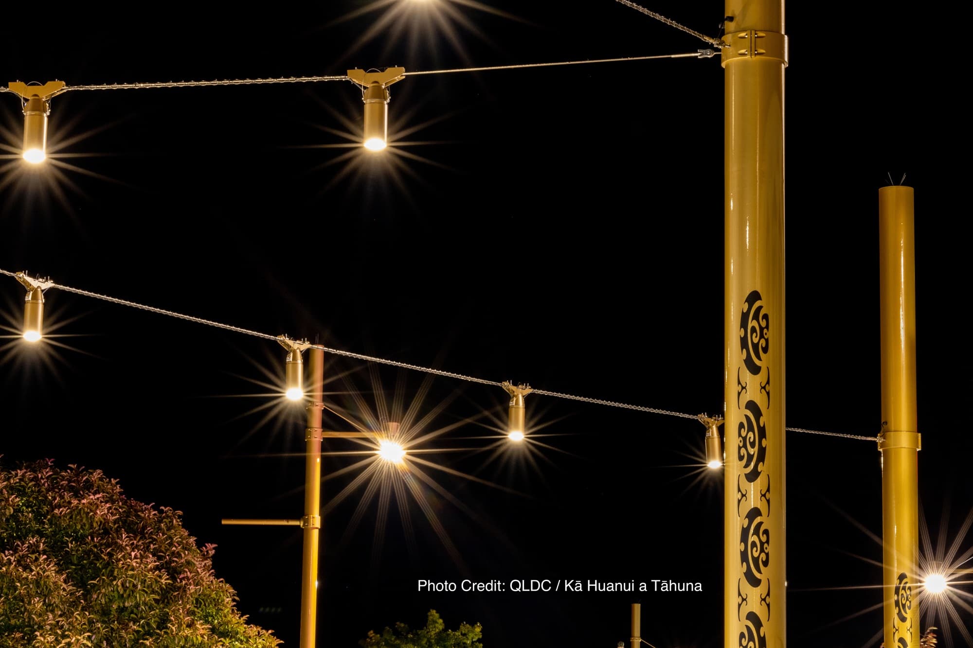 Gold light poles express the rich mining history of whero (gold) with ‘whero’ clearly visible on select poles. The pole designs also represent travel by waka with a beautiful contrasting Kowhaiwhai design.